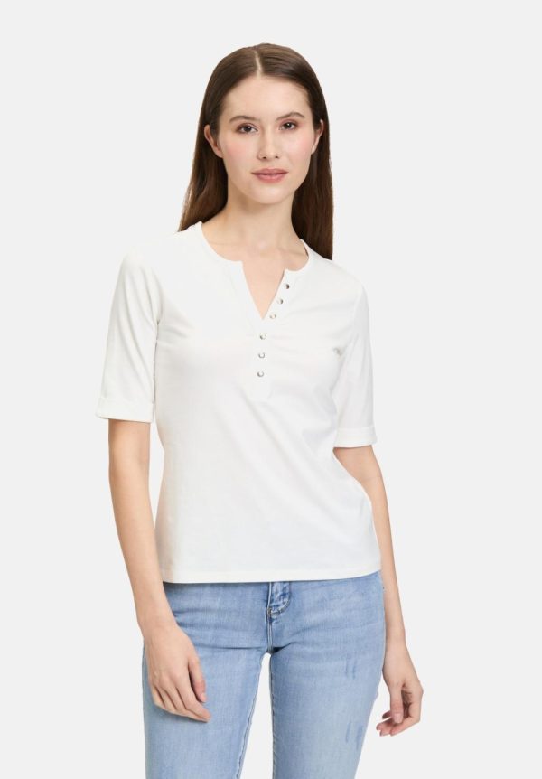 Dieses leicht taillierte Basic-Shirt mit Halbärmeln und Rundhalsausschnitt überzeugt durch sein schlichtes,unifarbenes Design. Die Knopfleiste sorgt für einen zusätzlichen Akzent und verleiht dem Shirt eine moderne Note. Der figurbetonte Schnitt schmeichelt der Silhouette und macht es zum idealen Freizeitbegleiter,der sich vielseitig kombinieren lässt.