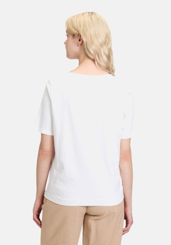 Ein stilvolles Basic-Shirt mit Placement-Druck,das durch seinen figurumspielenden Schnitt eine schmeichelhafte Passform bietet. Der Schlitz sorgt für eine zusätzliche,modische Note und lässt das Shirt locker und bequem fallen. Perfekt für Freizeitlooks,lässt es sich vielseitig kombinieren und verleiht jedem Outfit eine entspannte Eleganz – ein unkompliziertes und modernes Kleidungsstück für jede Garderobe!