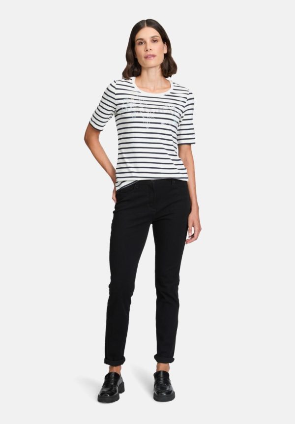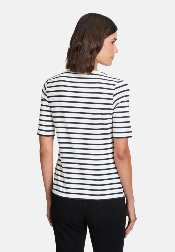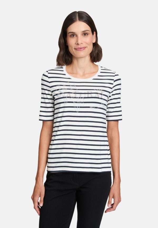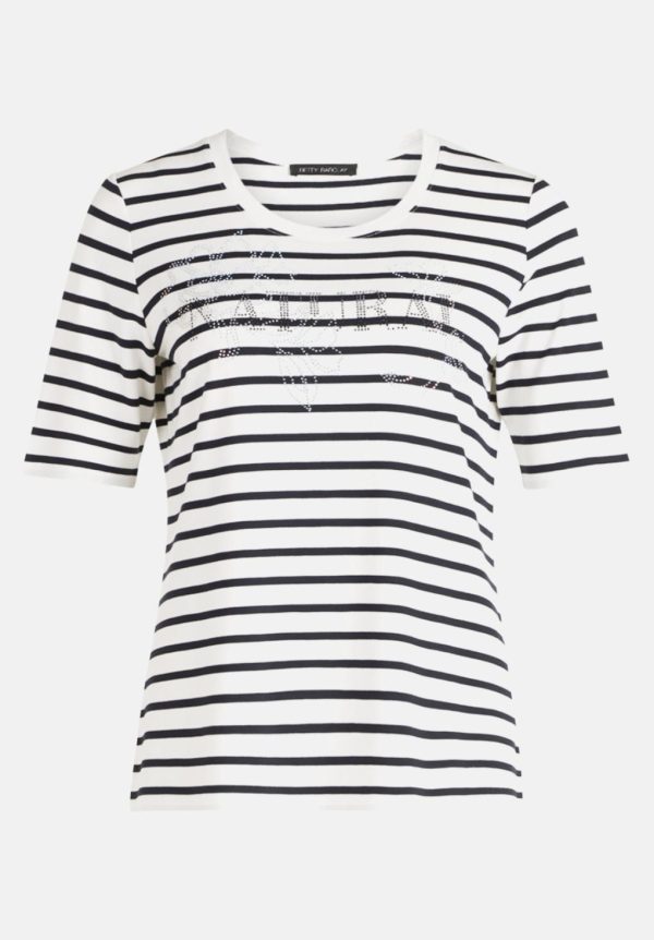 Damen Shirts | Betty Barclay Ringelshirt Mit Schmucksteinen Weiß/dunkelblau Weiß